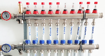 - Advanced heating controls. Hot/cold manifold in a heat pump system being installed by